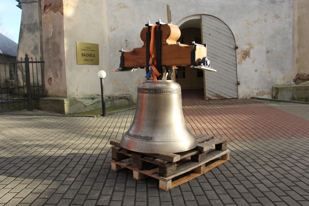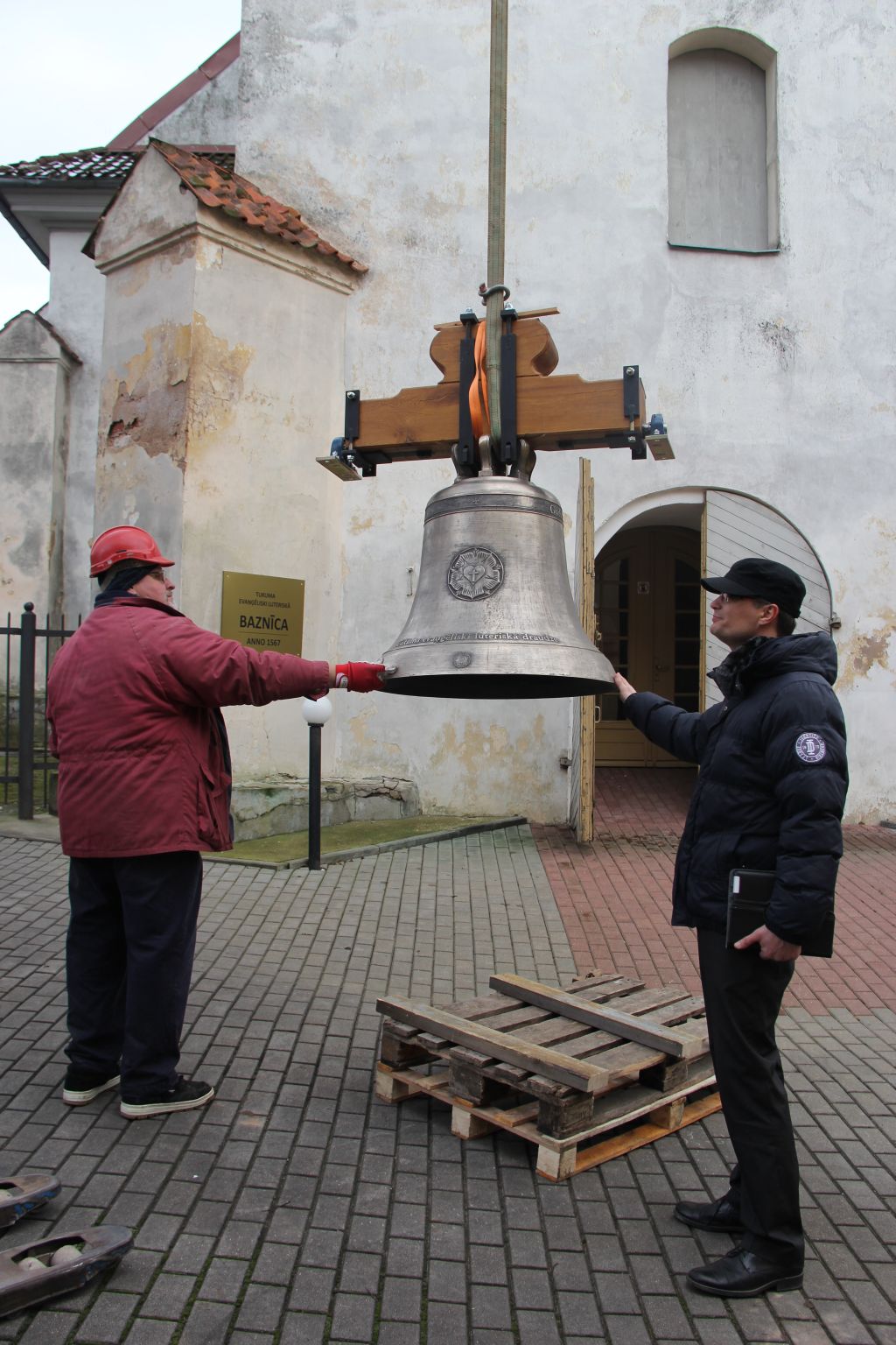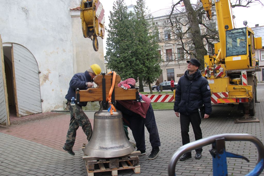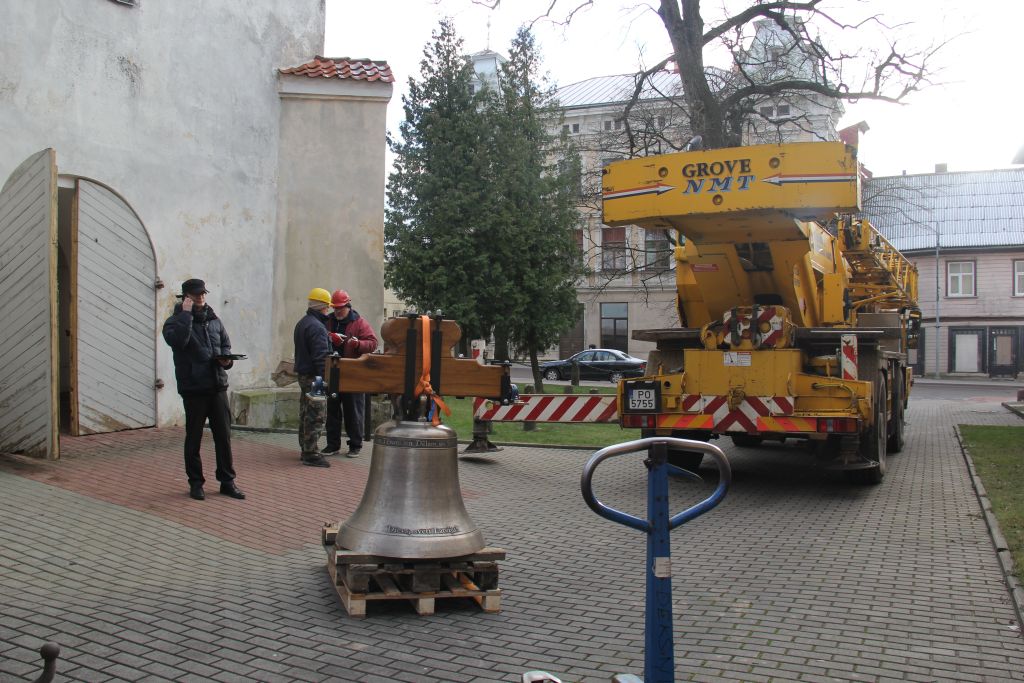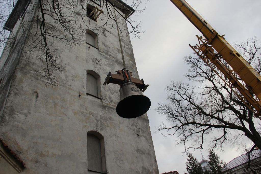 Baznīcas tornī paceļ jauno zvanu