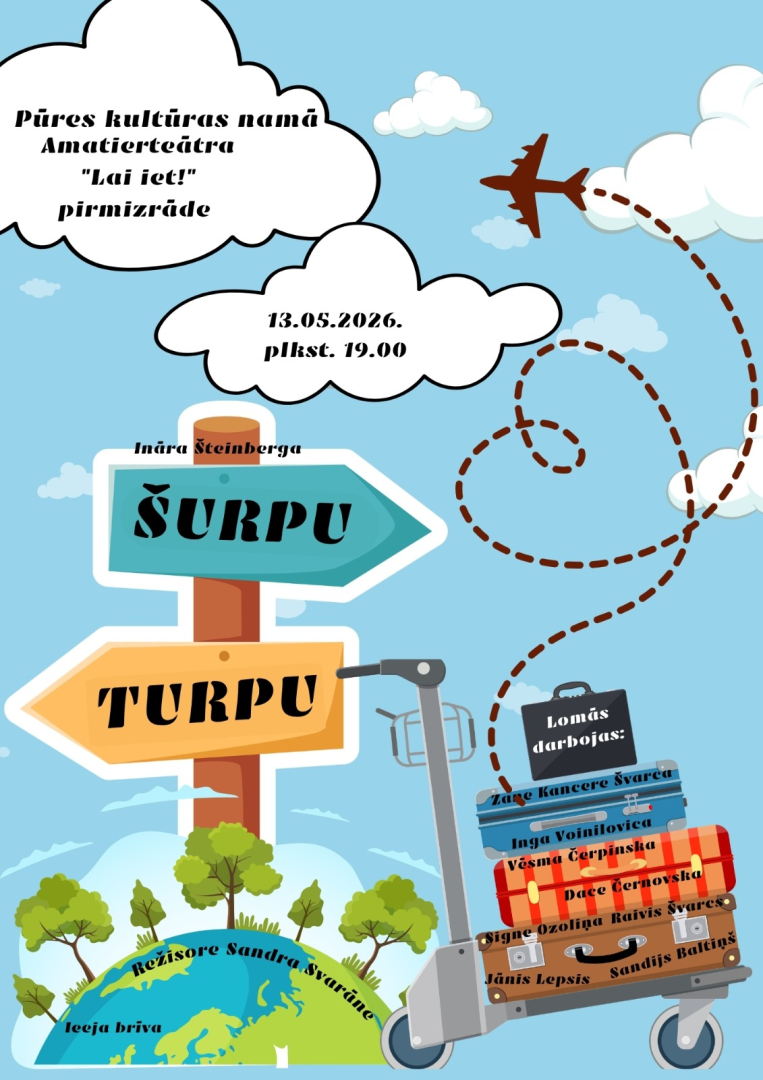 13. maijā plkst. 19.00 Pūres Kultūras namā amatierteātra "Lai iet!" pirmizrāde "Šurpu turpu".
