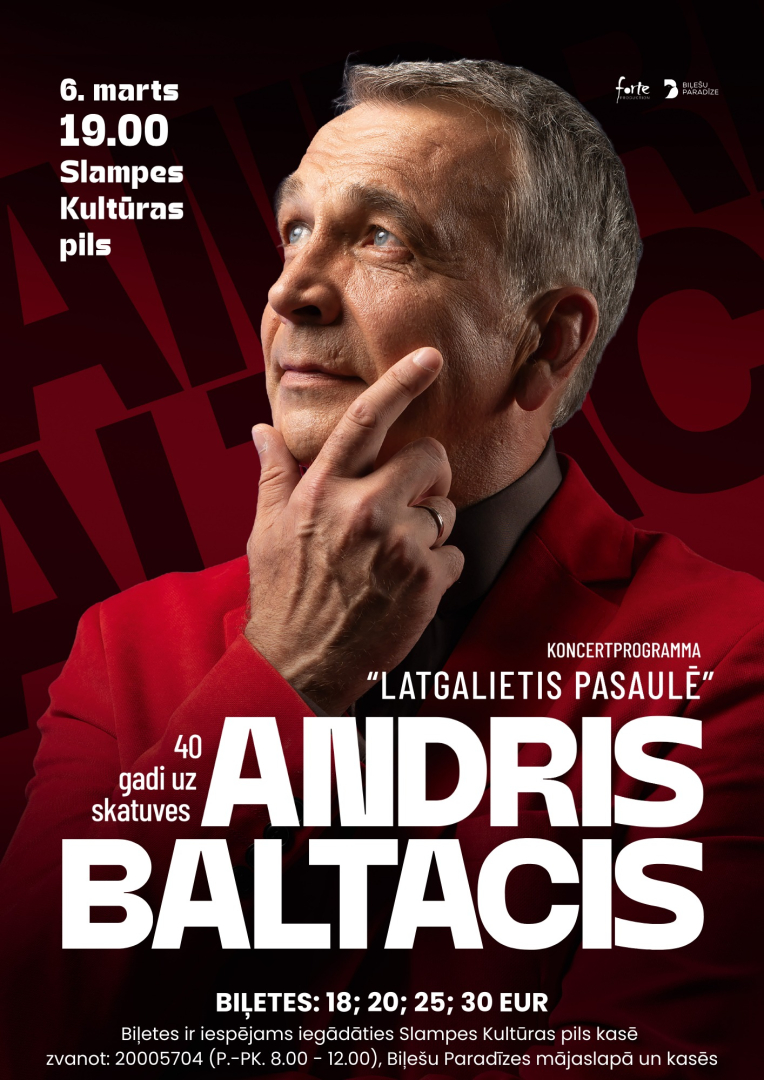 6. martā plkst. 19.00 Slampes Kultūras pilī Andra Baltača koncertprogramma "Latgalietis pasaulē".