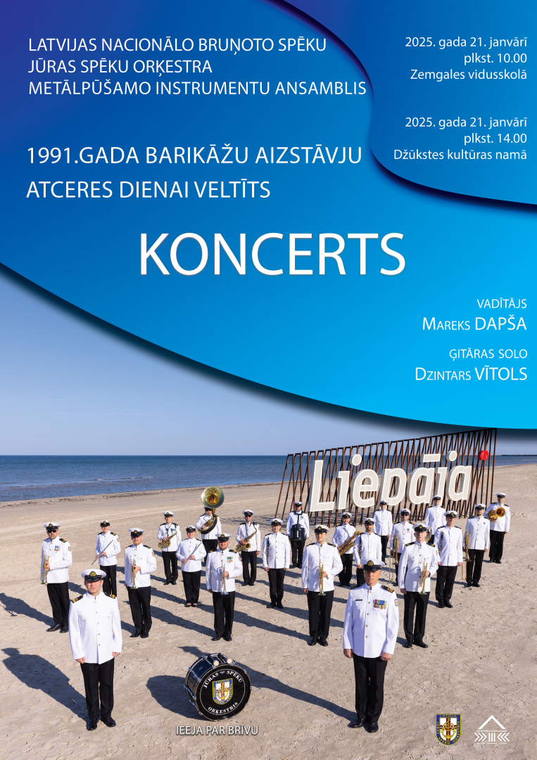 21. janvārī plkst. 14.00 Nacionālo bruņoto spēku Jūras spēku orķestra pūšaminstrumentu ansamblis un ģitārists Dzintars Vītols aicina uz 1991. gada barikāžu atceres dienas koncertu Džūkstes kultūras namā.