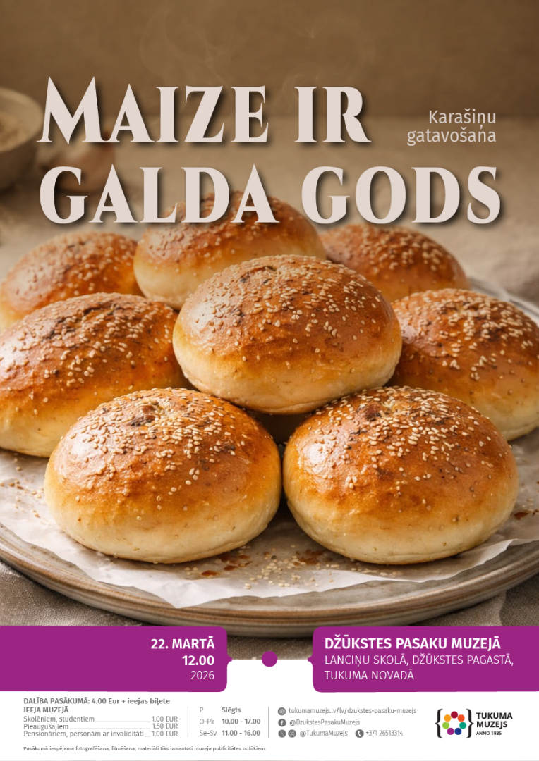 22. martā plkst. 12.00 Džūkstes Pasaku muzejā interesenti aicināti pievienoties karašiņu meistarklasei “Maize ir galda gods”.