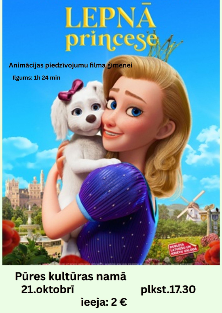 21. oktobrī plkst. 17.30 Pūres Kultūras namā skatāma animācijas filma visai ģimenei "Lepnā princese".