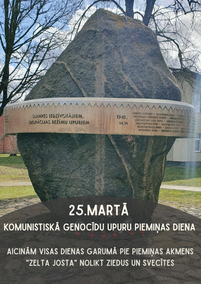 Visas dienas garumā pie piemiņas akmens “Zelta josta” Slampē aicinām nolikt ziedus un svecītes.