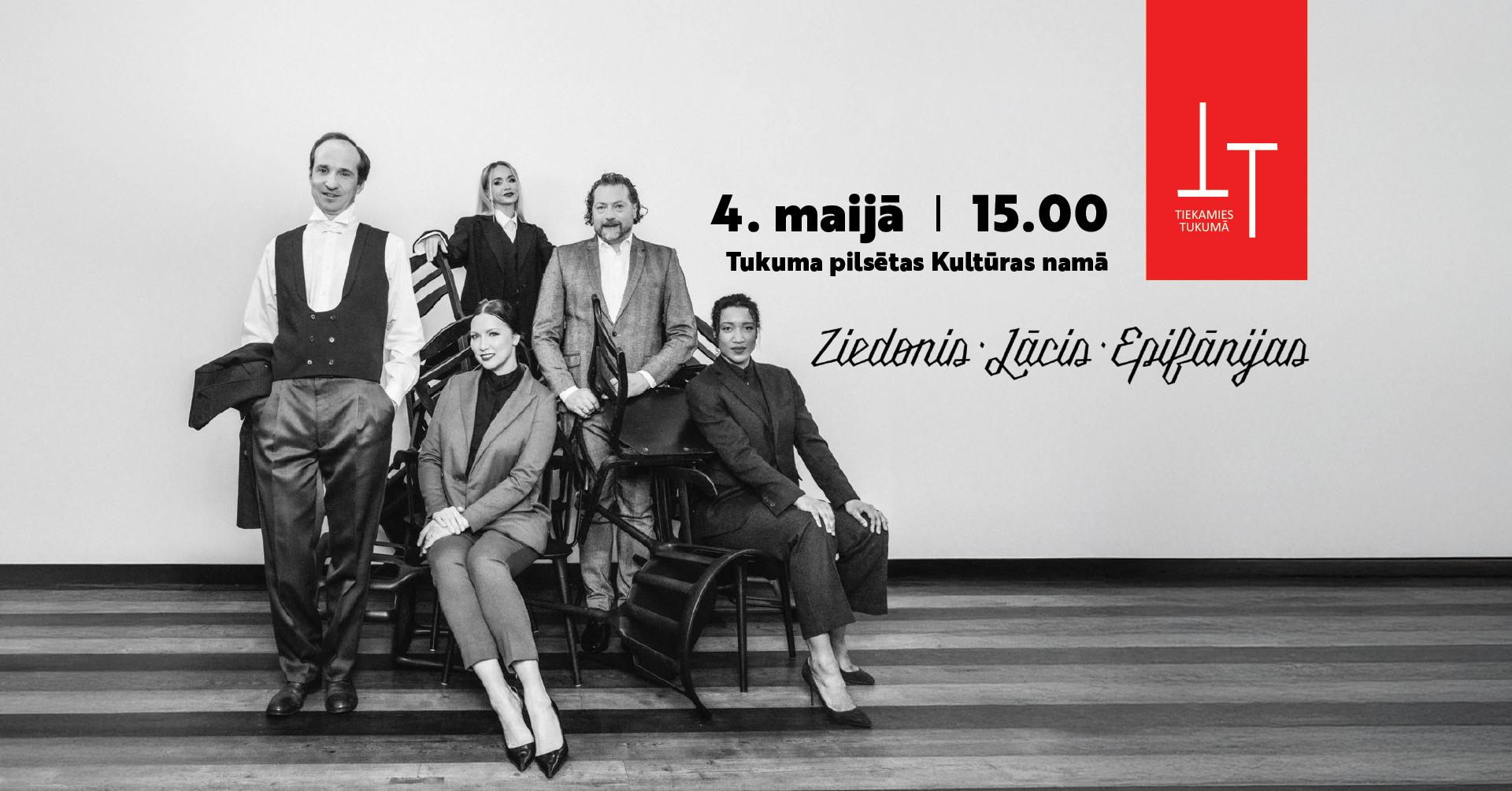 4. maijā plkst. 15.00 Tukuma pilsēta Kultūras namā koncertuzvedums "Ziedonis. Lācis. Epifānijas". Ziedoņa epifānijas Kārļa Lāča mūzikā, Aijas Andrejevas, Aminatas Grietas Diarras un Aijas Vītoliņas dziedājumā, kā arī Kaspara Znotiņa lasījumā.