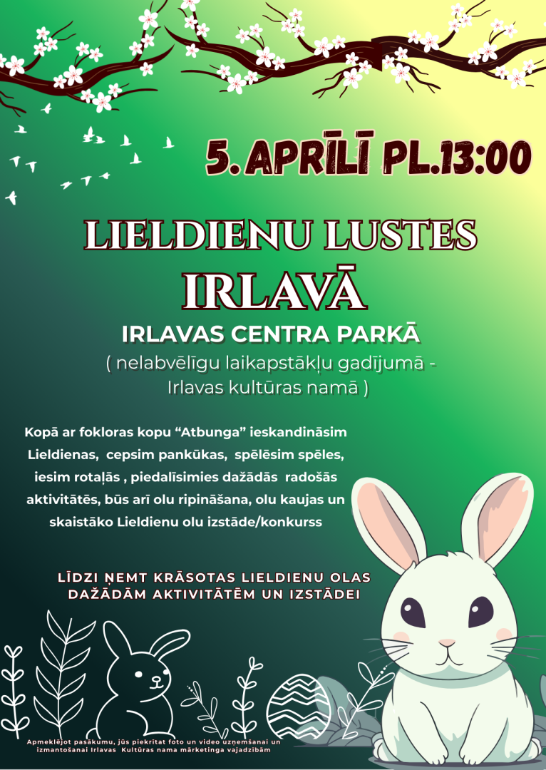 5. aprīlī plkst. 13.00 Lieldienu lustes Irlavā.