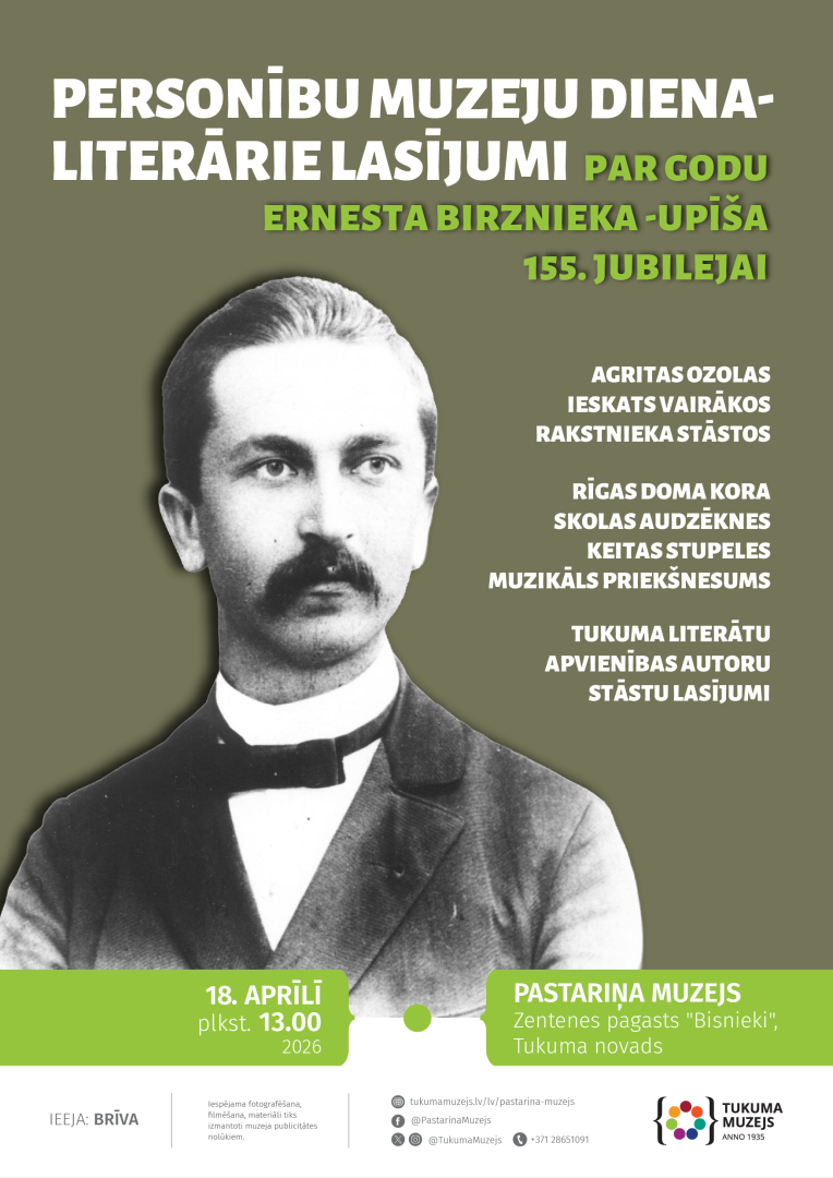 18. aprīlī plkst. 13.00 Pastariņa muzejā norisināsies Personību muzeju diena - literārie lasījumi par godu rakstnieka Ernesta Birznieka-Upīša 155.jubilejai.