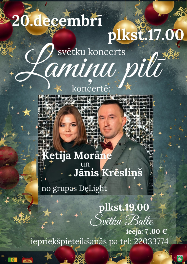 20. decembrī plkst. 17.00 Lamiņu pilī svētku koncerts, kurā piedalīsies Ketija Morāne un Jānis Krēsliņš no grupas "DeLight".