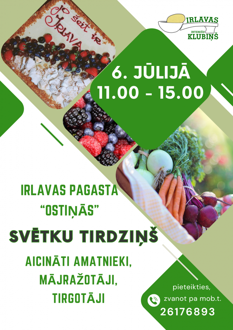 6.jūlijā plkst.11.00 Svētku tirdziņš Irlavas pagasta "Ostiņās"