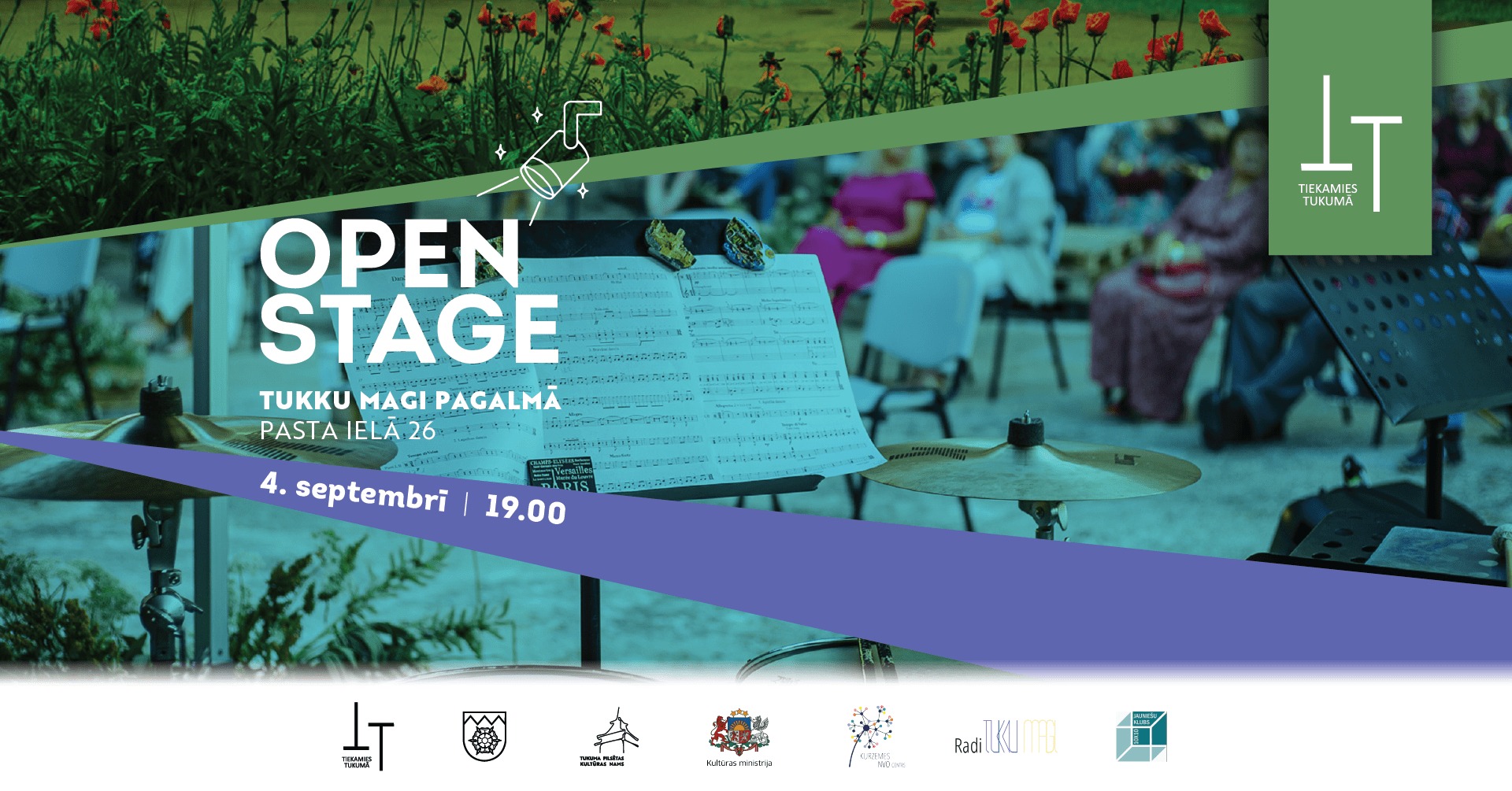 4. septembrī plkst. 19.00 Tukku Magi pagalmā OPEN STAGE sadarbībā ar jauniešu klubu 10x10 TM Open Stage - atvērtā skatuve ikvienam, kurš vēlas izteikties. Mūzika, literatūra, teātris, kustība, mode, brīvruna, improvizācija un citi radošās izpausmes veidi.