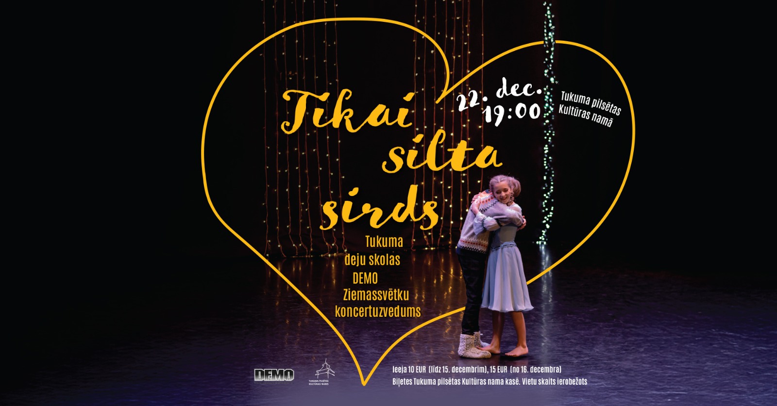 22. decembrī plkst. 19.00 Tukuma pilsētas Kultūras namā Tukuma deju skolas "Demo" Ziemassvētku koncertuzvedums "Tikai silta sirds".
