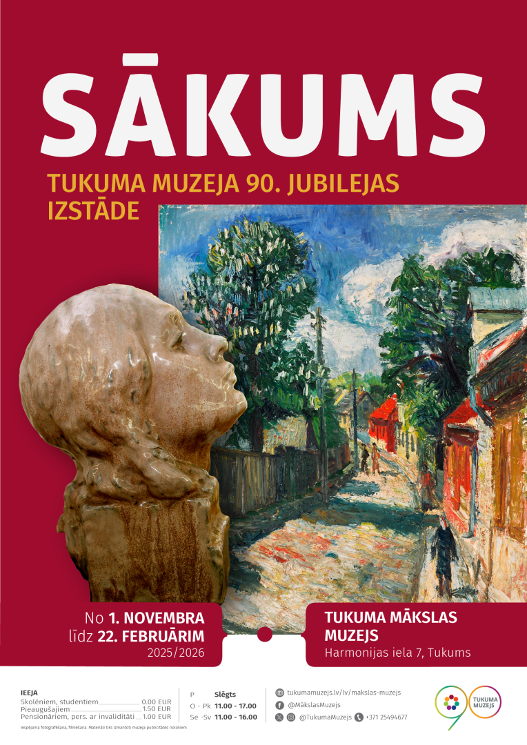 Ieeja atklāšanas pasākumā bezmaksas. Izstāde no 2025. gada 1. novembra līdz 2026. gada 22. februārim. Informācija un grupu pieteikšana: 25494677, makslasmuzejs@tukumamuzejs.lv. Adrese: Harmonijas iela 7, Tukums. www.tukumamuzejs.lv