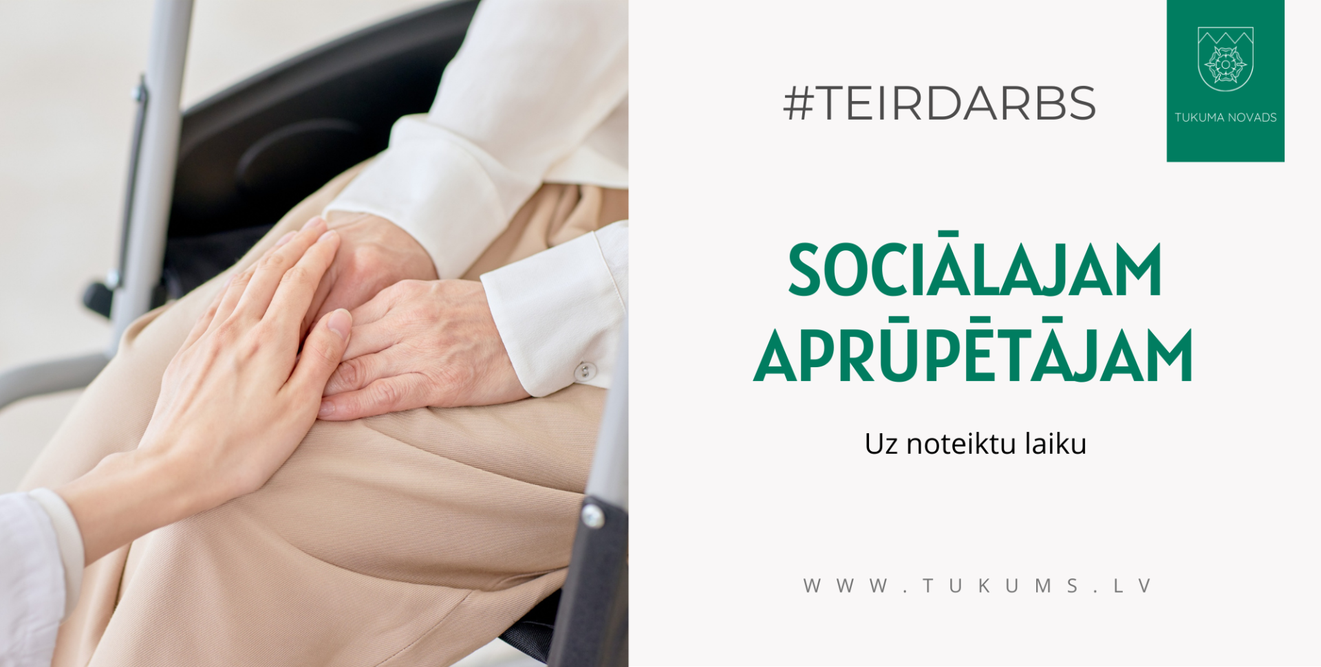 SOCIĀLĀ APRŪPĒTĀJA(uz noteiktu laiku - projekta īstenošanas laiku līdz 30.09.2027.) amatu ar darba izpildes vietu Tukuma novadā (Slampes pagasts):